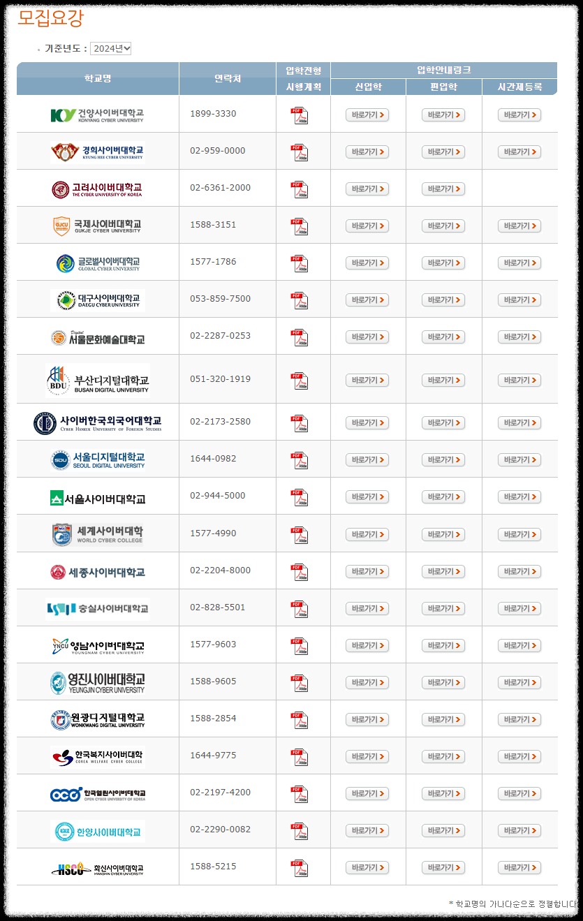 어떤 사이버대학교 들이 있는지 볼 수 있고,