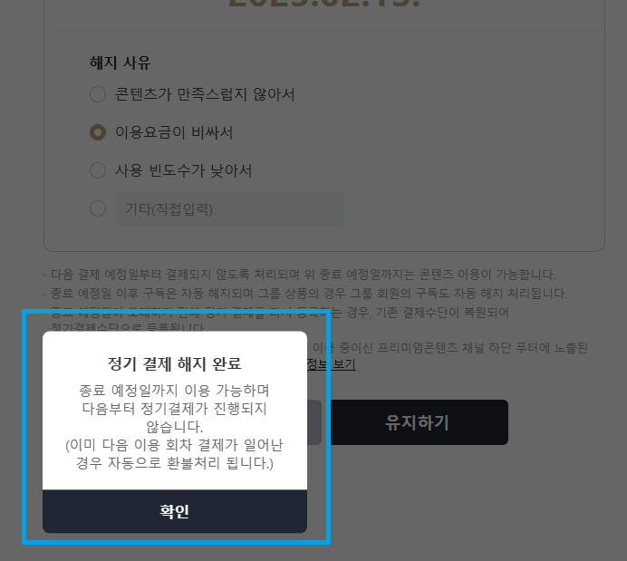 4) [해지하기]와 [유지하기] 중에 [해지하기]를 누릅니다.